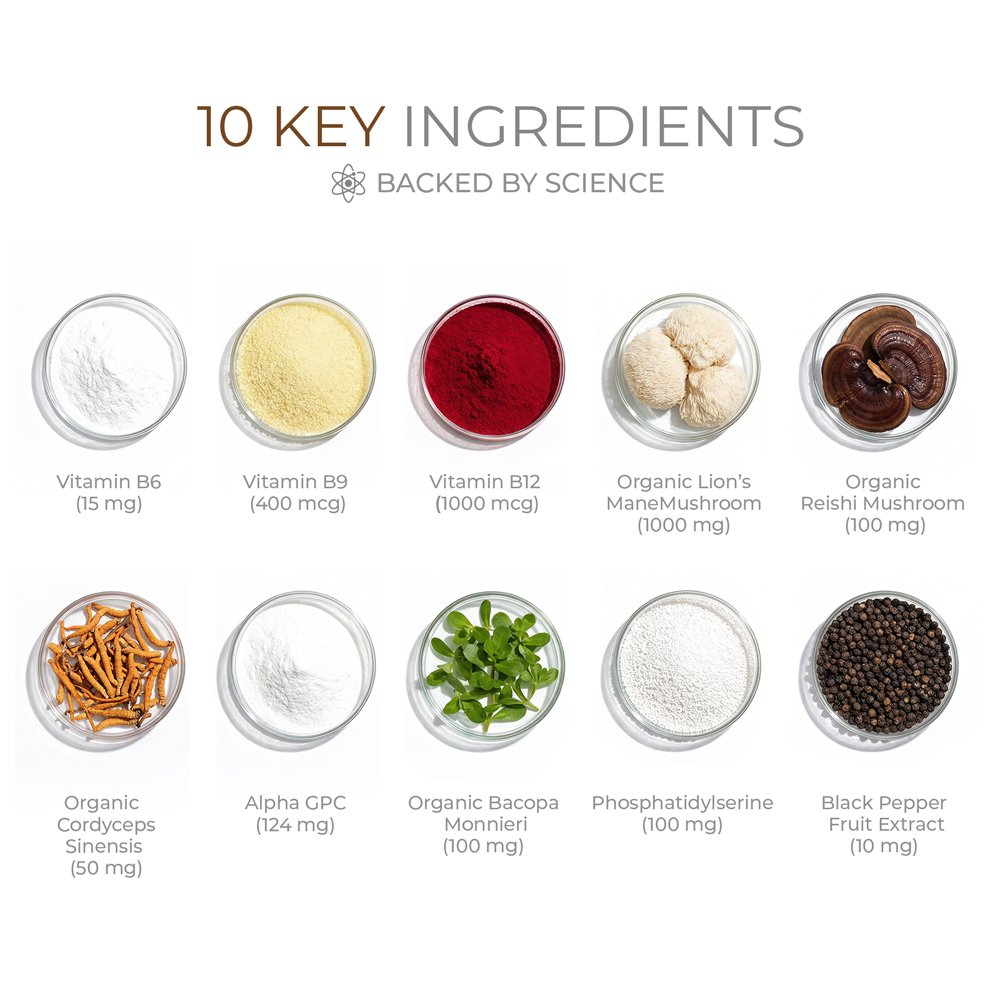 Each ingredient works together to provide comprehensive support for your brain, body, and overall health.